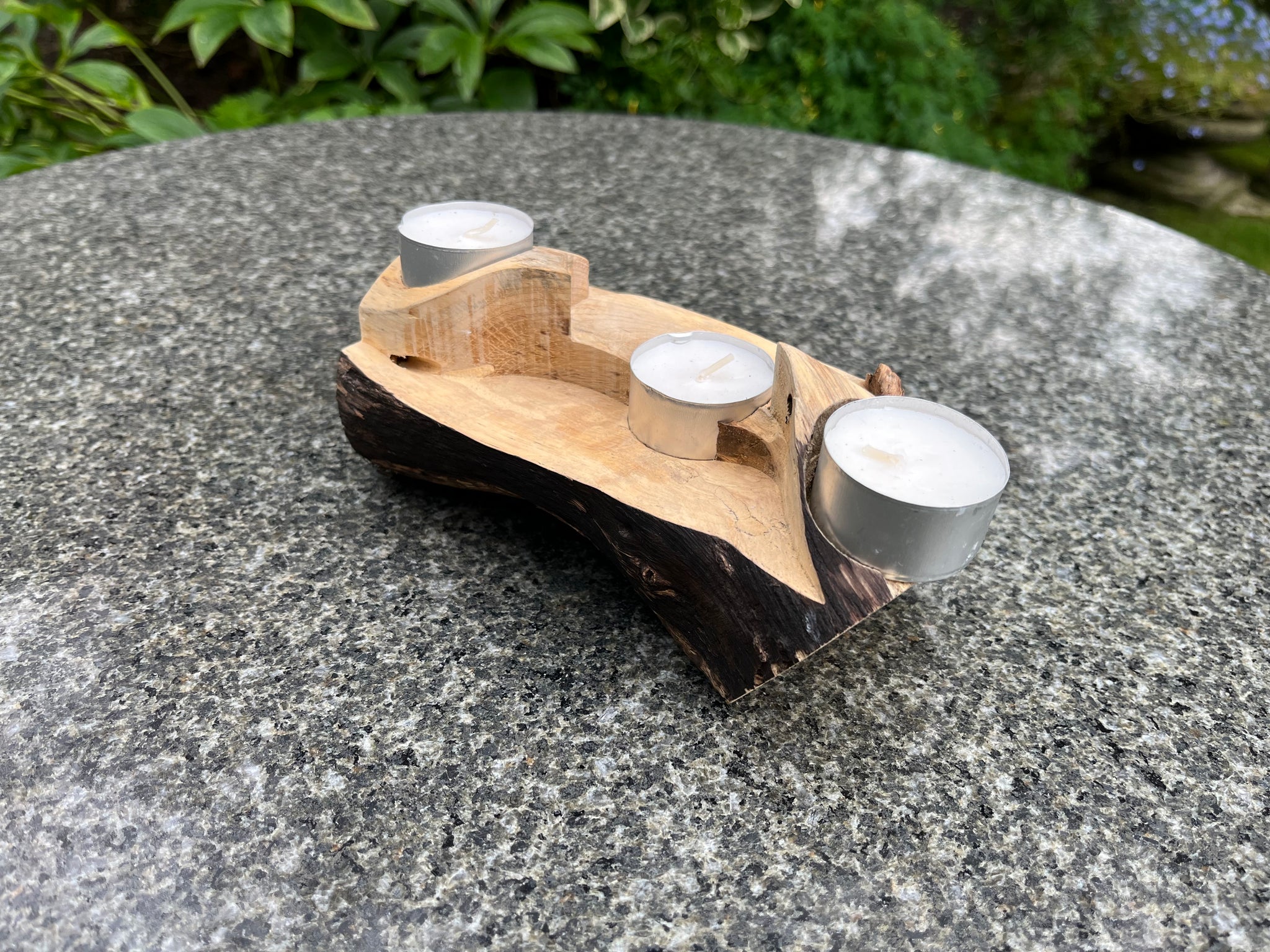 A unique Oak Tiered Tealight Candle Holder beautifully crafted by hand in Hampshire, England.