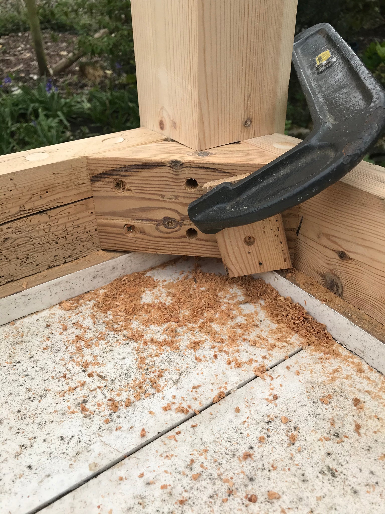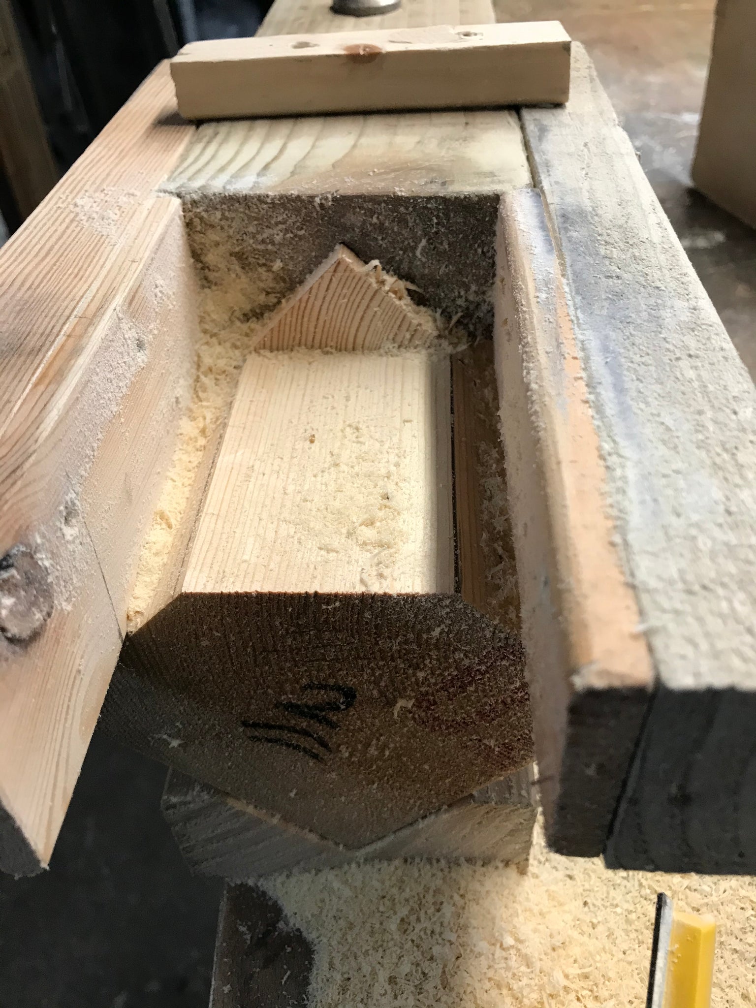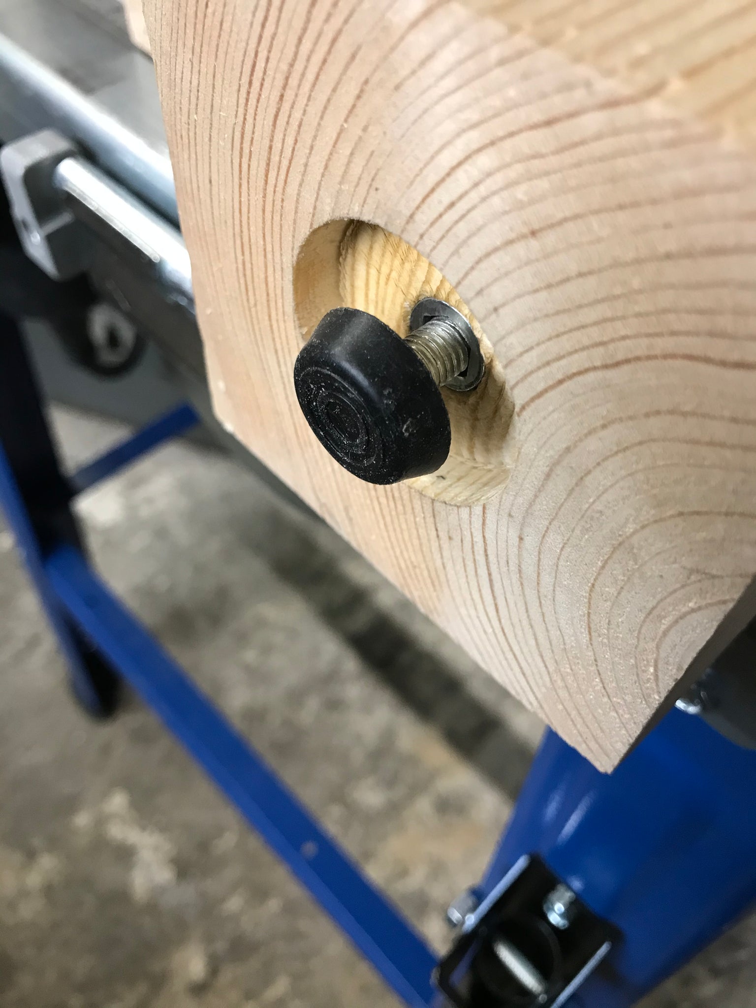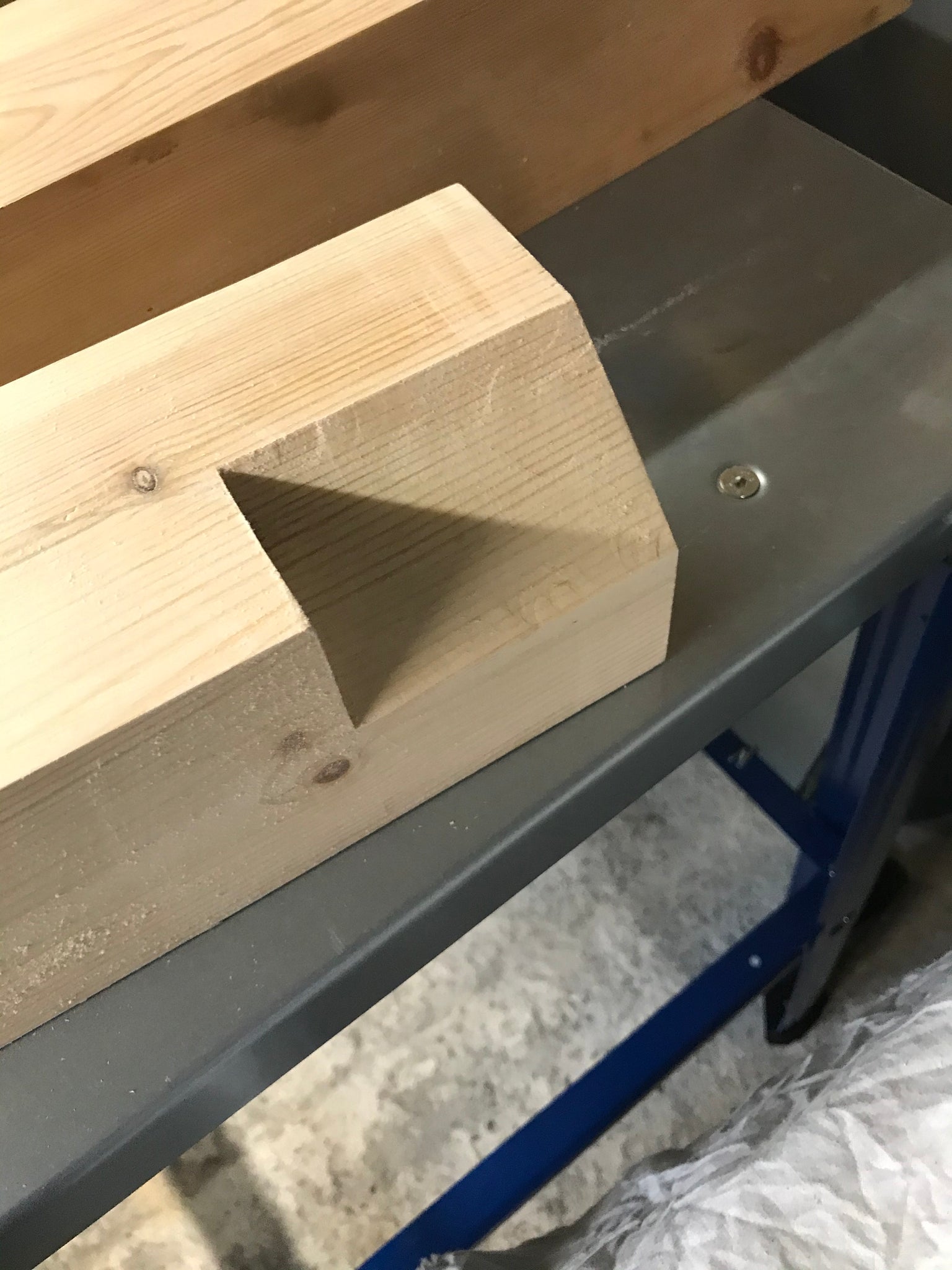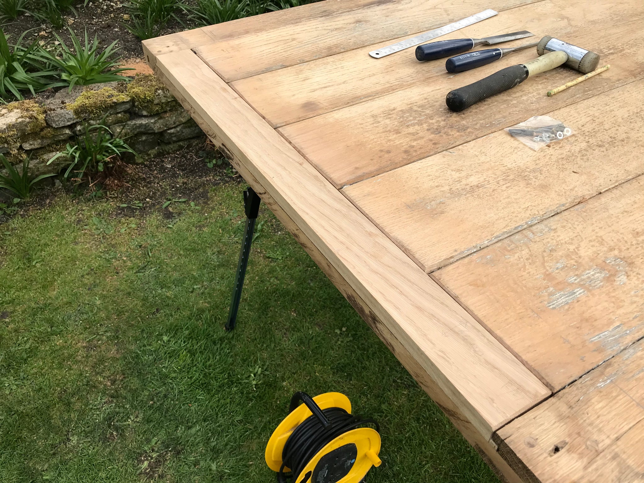 Surplus wood used for anchoring legs to table beams, alas using modern screws