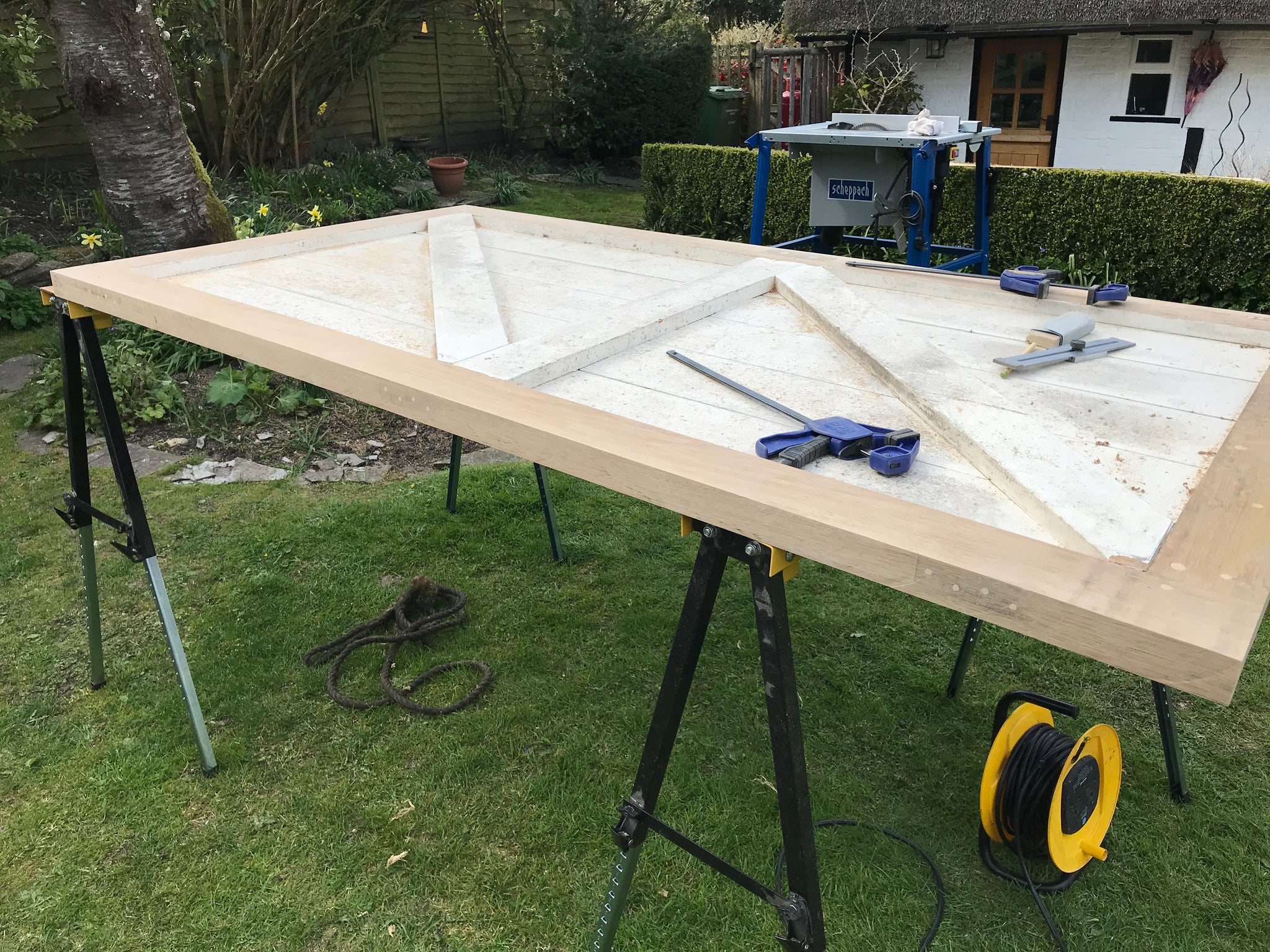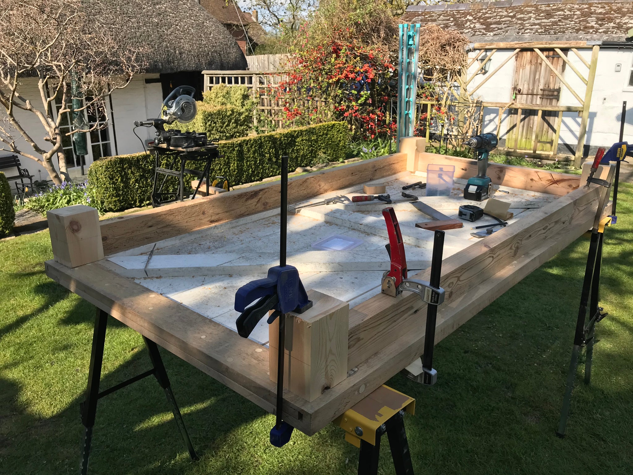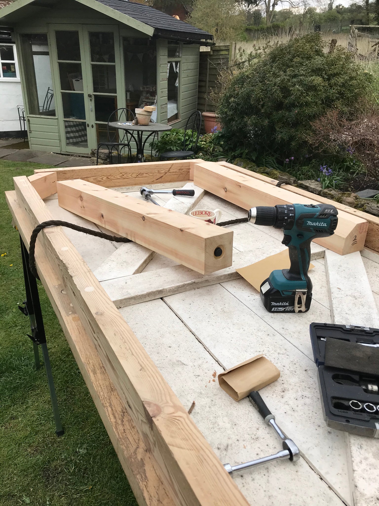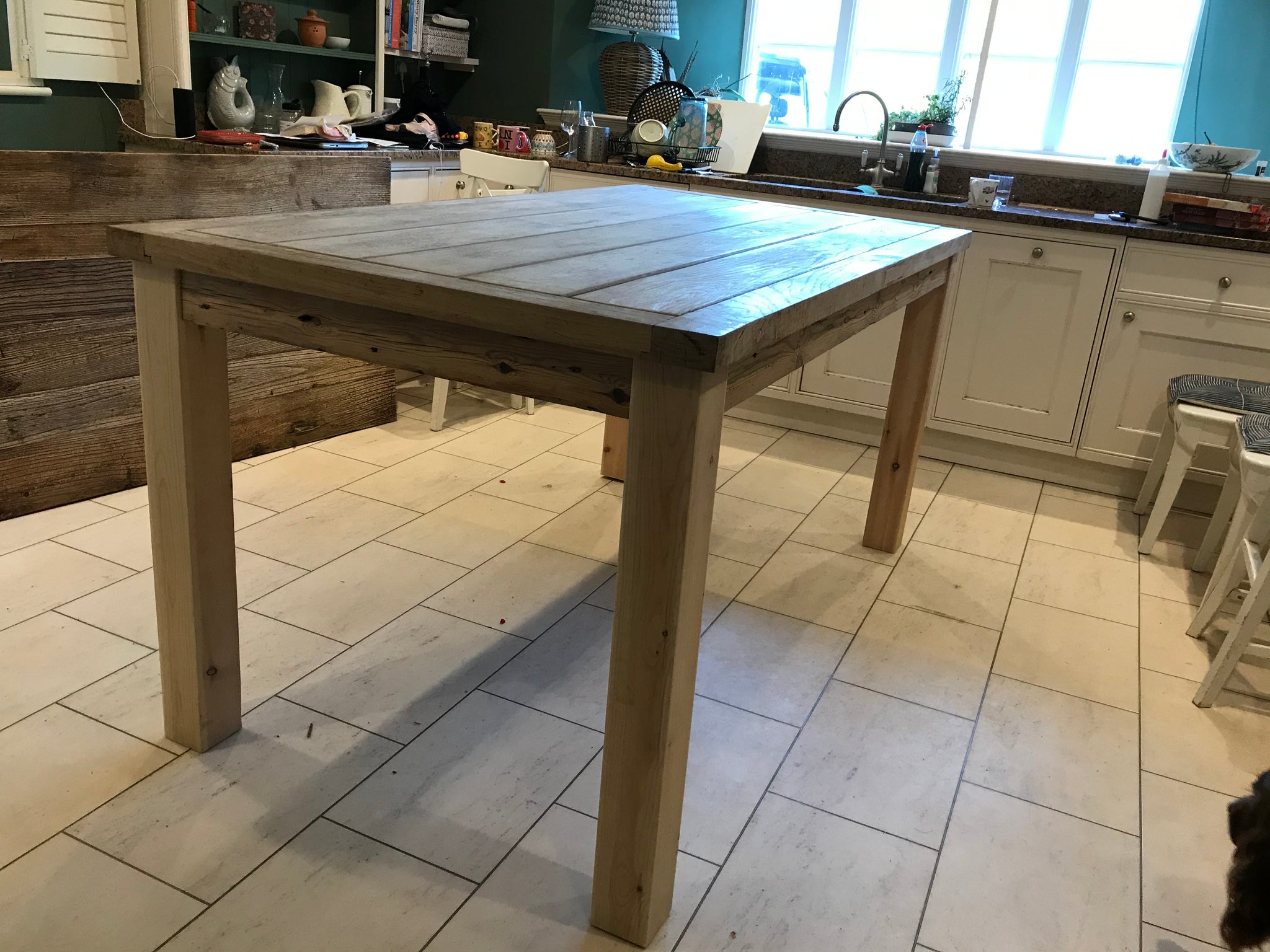Table legs x 4 machined from old 6’ fence posts from the barn