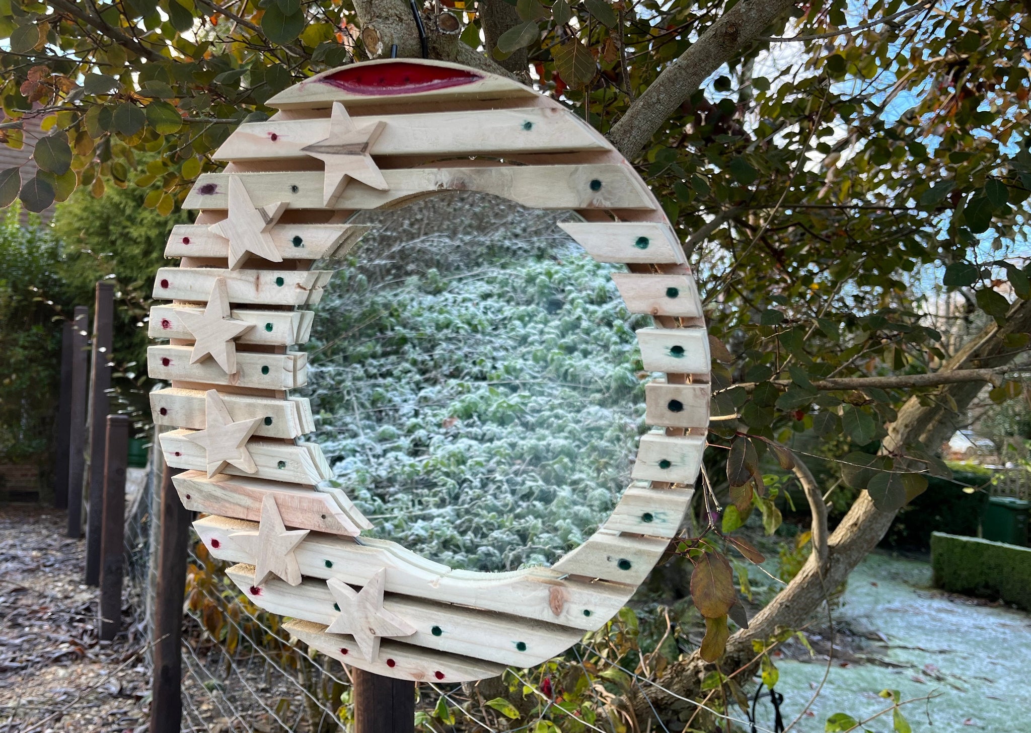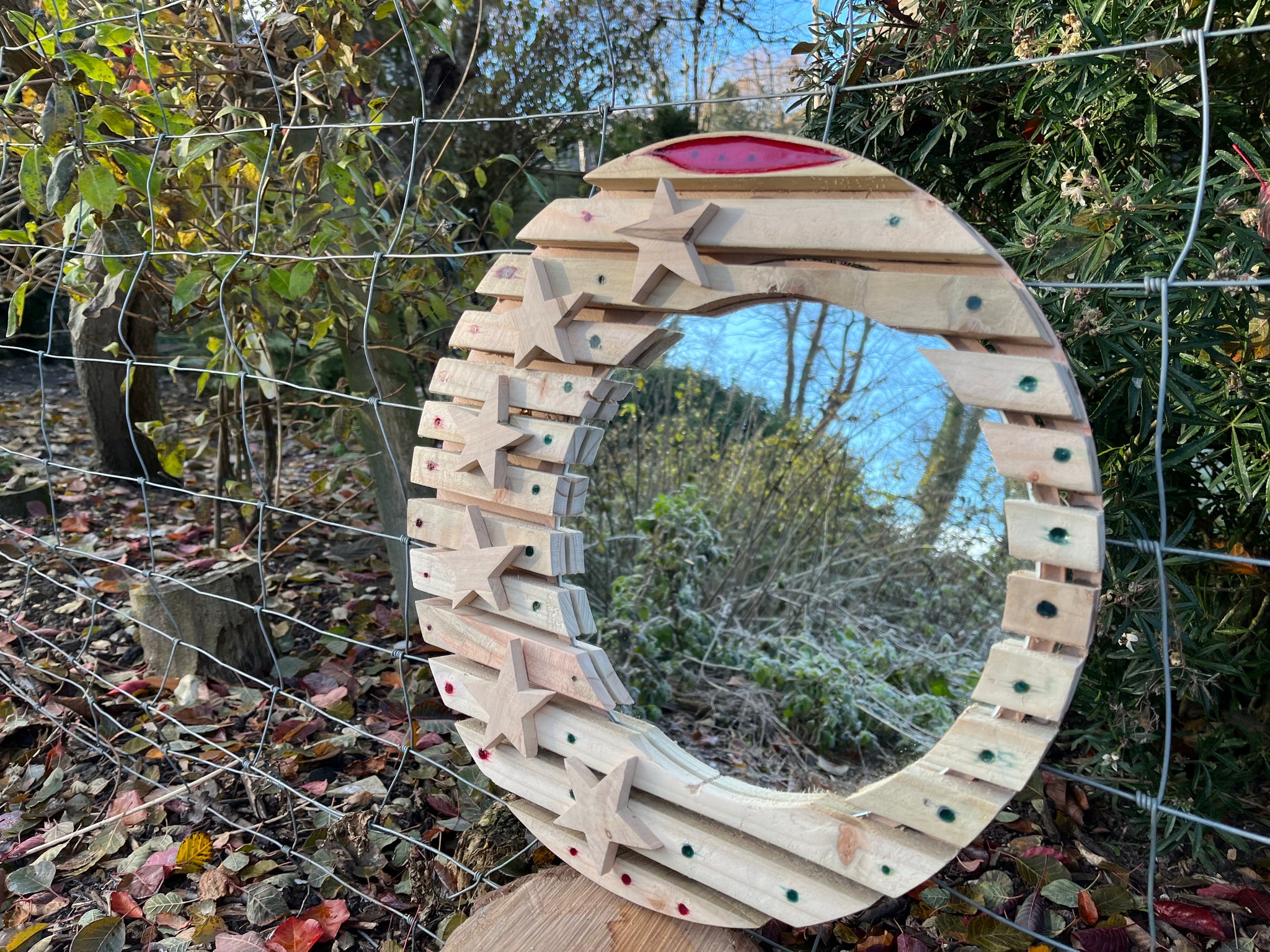 Hand crafted upcycled pine mirror