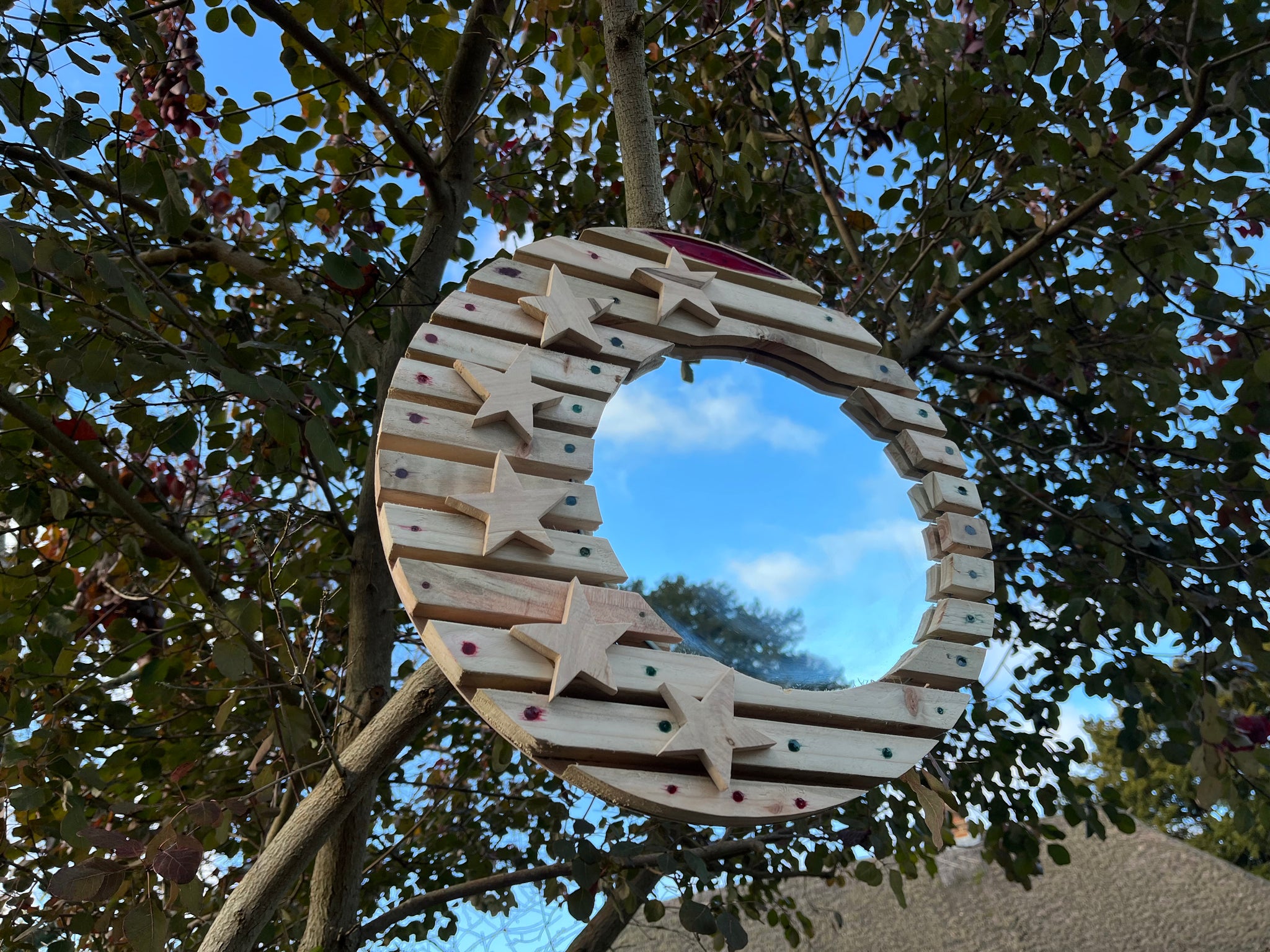 Six,  64mm Oak stars follow the curve of the mirror